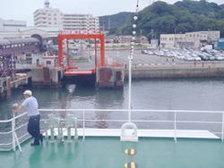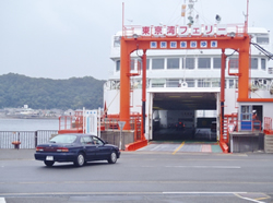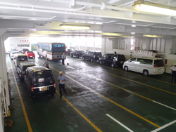 ![]() フェリーに順番に乗り込む乗用車(東京湾フェリー)