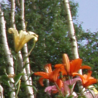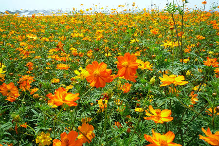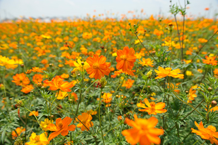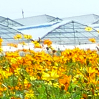 写真EとFは、同じキバナコスモスをポケットサイズのコンパクトデジタルカメラ(写真E)と俗にフルサイズと呼ばれるデジタル一眼レフ(写真F)で撮影したものです(写真G・Hはそれぞれの背景の拡大写真です)。