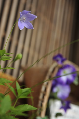 写真Kは標準ズームレンズをできるだけ望遠側にして、古い民家の軒先に咲く花を撮影したものです。背景が適度にボケたことで、建物の雰囲気を損なうことなく、花を引き立たせることができました。