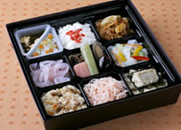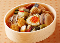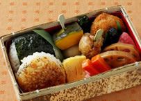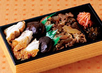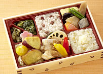 ![]() 850円 [上信越道・横川SA下り線 土・日・祝のみ販売] なんてヘルシーなお弁当! 舞茸ご飯や煮物に加えてこんにゃくの焼きそば、こんにゃくの天ぷら、こんにゃくデザート…。 |