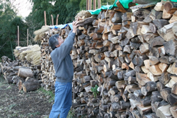 ![]() 庭の端には夏の間に切り出された薪が積まれて…