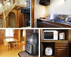 ![]() 【群馬県安中市松井田町坂本】 http://www.usuitouge.com/kutsurogi/index.php 4人用から8人用までコテージを完備。吹き抜けのリビングや薪ストーブの暖炉などがリラックスムードを盛り上げる。 |