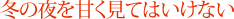太陽が顔を見せているうちは快適だった。 夏よりもキャンプ場ははるかに静かだし、自然のやわらかな音がぼくたちを和ませてくれる。太陽が沈んでからも数時間はまだ大丈夫。温かいスープをいただき、薪をたっぷりとくべた大きな炎を囲みながらホットウィスキーを楽しんでいた。 しかし、冬の日キャンプは夜が長い。午後4時過ぎから暗くなってしまうから、夕食を食べてお酒を楽しんでいると、たっぷり時間が経ったように感じるのだが、時計の針はまだ8時ぐらいを指している。 こうなるとやることがない。星空にも飽きてしまったし、揺れ動く炎も4時間見続けているのだからもう十分。 お酒も気持ちよく体内に浸透しているから眠くなる。 哀しいことに、メンバー全員が眠くなる。 こうして、冬の日キャンプ初級者のぼくたちは奈落の底に落ちていく。 ☆ みんなで同時に眠りについたものだから、誰も薪をくべない。威勢のよかった炎は徐々に小さくなって暖かさを失う。 冬の日キャンプに慣れていれば、防寒パッドやウインター用シュラフなどの備えも豊富で、まるで登山家のように万全かもしれないが、ぼくらはそうではなかった。 スリーシーズン用シュラフを毛布でちゃちゃっと補強。テントの下にはブルーシートを敷いて、内側に毛布を敷いたのだけど、すべてがにわか対策。寒さはじわじわとぼくらを襲ってくる。 身体が芯から冷える。それでもうとうとするのだが、寒さのために深い眠りには落ちない。 悲劇は明け方起こった。誰かが冷房機のスイッチを入れてしまったのかと思うほどの寒風がテントの中を襲う。あまりの寒さに潜ったシュラフから顔が出せない。モルモットのようにシュラフの中で丸まってじっとしているのがやっと。 1時間は耐えただろう。空が明るくなってきたから、ぼくは勇気を出してシュラフから顔を出してみた。すると、外は大雪。3人分並んだシュラフの上には雪が積もっていた。 原因はその後にわかった。タバコの煙を気にした先輩が、換気のためにテントを開けたのだが、酔っていたためにそのままシュラフに潜り込んで寝てしまったのである。そのあげくの「テント内降雪」という珍事。 迷惑な話である! |