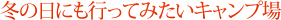 | 以上は主にキャンプ場などのコテージであり、調理などを自分で行うところを選んだ。しかし、薪ストーブや囲炉裏があることをセールスポイントにしている「宿(食事付)」もたくさんある。炎のあるところに宿泊して、冬のアウトドアを存分に遊んでほしい。