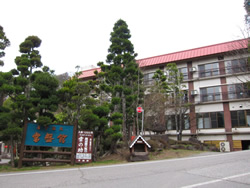 | 木立のなかにある一軒宿。ロビーで日帰り入浴の受付をすませると、その脇に登山電車の乗り場があった。天空の露天風呂へと続くレールをたどっていけば、ちょっとした小旅行を体験できる。 |