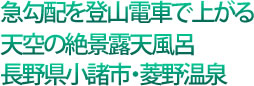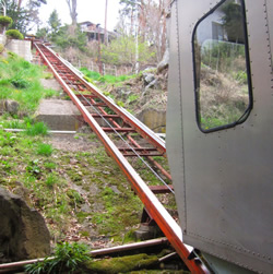 ![]() 急勾配の坂道を、山頂の露天風呂めざして登山電車が上って行く