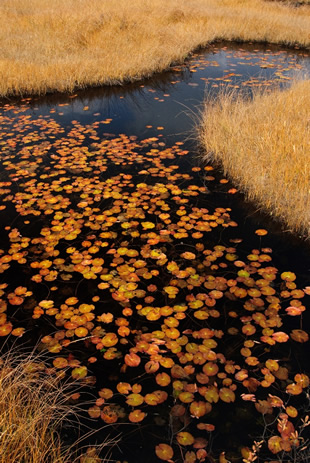 写真Iはヒツジグサが紅葉している尾瀬の池です。このように手前から奥まで池全体をシャープに見せたい場合、「絞り」を絞って撮影します。このような撮影方法は俗に「パンフォーカス」と呼ばれています。ここでは絞りF11に設定しています。
