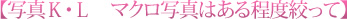 写真Kは「絞り」がF5.6のためチョウの頭の部分にしかピントが合っていません。
