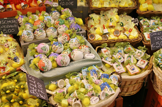 美空ひばりが歌った「帰れソレントへ」のおかげでイタリア南部、ナポリから近い小さな海岸沿いの街、ソレントは日本でも有名になりました。日本語訳された歌詞にも「うるわしの海」「オレンジの園」などのキーワードが出てきますが、たしかにソレントは海と柑橘類の街です。オレンジというよりレモンが有名なのですが。街中にはレモンチョコレート、レモンソープなどを売るお店が数軒ありました。
