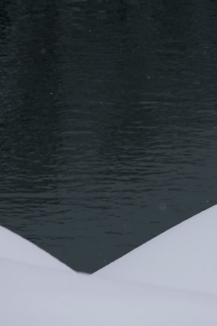 写真A・Bは国道脇の川岸に積もった雪と背後の川面を撮影した写真です。