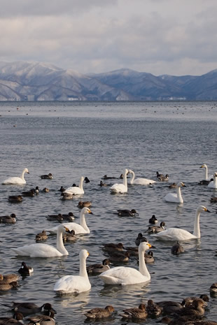 日本にやって来るのは主にオオハクチョウとコハクチョウ。北海道や東北には「白鳥飛来地」が点在しています。
