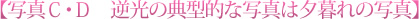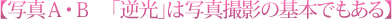写真Aは曇った日に、写真Bは晴れた日の午後に「逆光」で撮影したものです。