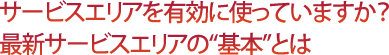 | 自動車道を使ったロング・ドライブの場合、ほぼ100%の確率でSAを利用しているのではないだろうか。でも、トイレやお腹が空いたときだけで、SAの機能を十分に利用していない人も多いのでは。それでは最新SAの機能を復習してみよう。 |