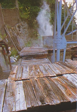 ![]() 勢いよく吹き出す「行幸源泉」。周辺には歴史のある共同浴場もある