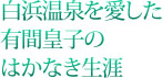 | 南紀白浜は有馬温泉や道後温泉とならぶ日本三古湯のひとつ。記述のある『日本書紀』のエピソードは、有間皇子のはかなき生涯について語っている。夏の海水浴場としても人気のリゾート地だが、歴史をひもとくといにしえの物語が見えてくる。 |