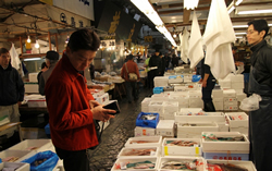 ![]() 場外市場には外国からのお客様も大勢。たしかにあの賑わいは東京観光の目玉かも