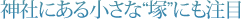 ![]() 玉子塚と天照大神・大国主命・少彦名命・天日鷲命の四柱を祀る末社 ![]() 日本人が大好きなエビを供養するために建てられた海老塚