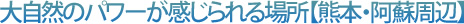 | 海外から日本のパワースポットを訪れる人が増えているのをご存じですか? 京都や浅草、鎌倉などの歴史ある古都も目的地のひとつですが、自然の中のパワースポットが注目されています。彼らが注目するパワースポットのひとつが「阿蘇」なのです。 |