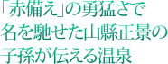 ゲームの概略はこんな具合だ。自分の城を構えて木や綿、食糧などの生産品を増やし、武将のカードを集め、鍛練をして兵や城のランクを上げ、仲間の城主とともに他国と争う。 オンラインゲームがどのようなものか知りたくて、一時期ハマっていた。 強い武将カードの購入のためにお金をつぎ込んだり、早くランクを上げるために膨大な時間をかけたりする人もいる。 私はもっぱらお金をかけずにゆっくり成長させる、非積極的なプレーヤーだった。 さて、このゲームで兵士を鍛練する過程の話だが、城のランクが上がると「騎馬兵」はより強い「精鋭騎馬」と呼ばれるようになる。さらにランクが上がれば「赤備え」だ。 歴史好きの人はここでピンとくる。 強い騎馬軍団がなぜ「赤備え」と呼ばれるのか、その理由がわかるからだ。 「赤備え」とは、戦国時代の部隊編成の一種で、鎧兜や甲冑、具足、陣羽織など、あらゆる武具を朱塗りにしているのが大きな特徴だ。 朱に発色させるのはコストがかかり、武勲を立てた者のみが得られる勲章のような色。これを集団で組織し、騎兵のみの騎馬隊として仕上げたのが、甲斐武田氏の重臣で武田二十四将のひとり、飯富虎昌(おぶとらまさ/1504-1565)だ。 武勲を上げねば土地が得られない次男を中心に組織され、斬り込み隊として戦では先陣をきって活躍。赤備えは精鋭部隊の代名詞となった。 だが、永禄七年(1564)、義信事件が起こる。 武田信玄(1521-1573)の嫡男・義信(1538-1567)と飯富虎昌らが共謀し、信玄暗殺の謀反を企てたとして処刑される。 義信は親今川派の立場にあり、今川領国への侵攻を志向する信玄との間に軋轢があったものと考えられている。 その後、赤備えを継承したのはすでに300騎を率いていた大将・飯富三郎兵衛尉。のちの山縣正景(1529-1575)であった。 正景は、武田軍が圧勝した三方ヶ原の戦い(1573)で、浜松城から武田軍の背後を狙って出た徳川家康(1543-1616)本陣に突進。家康に自害を覚悟させるほどの戦いぶりだった。 織田・徳川連合軍との熾烈な争いとなった長篠の戦い(1575)では、武田軍劣勢の中、討ち死に覚悟で敵陣に突っ込み、正景は全身に銃弾を受けて戦死する。 しかし、落馬せずに采配を指示したまま絶命したという説話が残るほど、勇猛な武士として知られている。 その後、赤備えは徳川精鋭部隊で四天王にも数えられる井伊直正(1561-1602)や、真田信繁(幸村/1567-1615)にも採用されるようになる。 赤備えは山縣隊だけでなく、他の武将から恐れられる最強部隊のイメージとして定着するようになるのだ。 ところで、武田信玄は、川浦地区の不動の滝付近に湧出する「川浦の湯」について、永禄四年(1561)に湯屋の開発を命じている。 ここには大きな洞窟があり、温泉が湧きだしていた。 発見は建久五年(1194)五月(『日本鉱泉誌』より)。鎌倉時代から伝わる温泉だ。 正景七男と伝えられる山縣三郎兵衛信継はのちに家康に仕え、川浦村500石を賜り川浦口留守番を命ぜられる。 この歴史をいまに伝える宿が残っている。 湯宿は安政三年(1856)、第13代当主山縣信徳が操業。 現在も14代目に当たる山縣信一郎氏、15代目善行氏が引き継ぎ、「山県館」という名で営業を続けている。 山梨市内を流れる笛吹川の上流に位置し、秩父市に向かう国道140号線沿いにある渓流沿いの一軒宿だ。 ここは正真正銘の武田信玄ゆかりの湯。 湯量は毎分1250リットルと豊富で、ふたつの大浴場のほかに、露天の岩風呂、ふたつの貸切風呂、いくつかの露天風呂付き客室と、豊富な源泉をふんだんにかけ流ししている。 湯はアルカリ性単純温泉で匂いもなく、クセがないのでどんな人でも違和感なく温泉を堪能できる。 ふたつの大浴場は12時と21時に男女の利用が入れ替わり、趣の異なるお風呂をどちらも楽しめるようになっている。 ぜひ行ってみてほしいのが階段で渓流沿いまで下って行く「信玄公岩風呂」だ。 ここは混浴になっており、岩肌から張り出した檜の迫力ある御殿造りの建物と、野趣あふれる岩の浴槽が信玄公の名にふさわしい、豪快な雰囲気に満ち溢れている。 かつては限られた武将しか入湯を許されなかった秘湯が、こうしていまも息づいている。 この時代に生きる幸せを感じられるのも、温泉を巡る醍醐味といえよう。 |