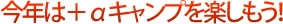 | キャンプやアウトドアで遊ぶ季節がやってきた。今年からキャンプを始めるという人もいれば、今年はさらにスケールアップして楽しみたいという人もいるだろう。スケールアップ願望派におすすめの「+α」はこれだ! |