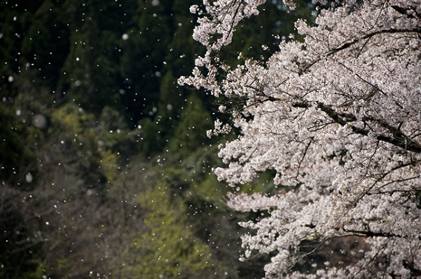 桜の花も終わりかけのころ、風が吹く度に花びらが舞い上がる桜の木を見つけました。