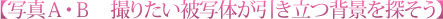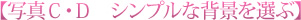 写真Dはゴチャゴチャとしているのに対し、写真Cはシンプルな場所を選んで背景にしています。