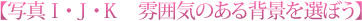 写真Kは長閑な田舎の風景を入れてみようとしたのですが、電線やガードレールが目立ってしまい雰囲気を損なっています。