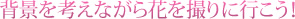 キレイなものを見つけたといって、すぐに写真を撮るのではなく、背景を探し、より美しく見せる。
