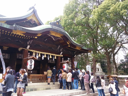 ![]() 本殿に続く長蛇の列。境内は武蔵野の雑木林の雰囲気が残っています
