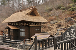 ![]() 大正十年当時の「玉子湯」湯小屋。入口が異なるだけで、現在と趣きは変わらない。