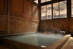 ![]() 野天岩風呂「天渓の湯」の脱衣所と浴槽のひとつ。さらに大きな浴槽がこの