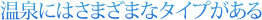 温泉施設にもさまざまなタイプがある。 まずは湯質が異なる。アルカリ性が強くてぬるぬるとした“美人の湯”と呼ばれる温泉。酸性が強くてぴりぴり感もあるのだが、石鹸いらずと呼ばれているような温泉。そのほか、無色無臭の温泉など、成分を細かく分類すれば日本には30以上の泉質がある。 次に湧出状態の違いも着目すべき点だ。自然湧出とは“地球の力”によって、自然に地表で湧くお湯だ。一方のボーリング温泉は人工掘削によって地下に眠る温泉を掘り当て、ポンプなどで汲み上げる方式をいう。 歴史ある温泉地は自然湧出のところが多いが、なかには自然湧出の温泉が枯渇し、ボーリングし直したところも目につく。 さらに湯船の形態も異なる。湯船の大きさを満たす十分な温泉湧出量があれば、源泉を引き入れ、そのままかけ流す“源泉かけ流し”になる。なかには適温で湧出されるために、加水も加温もしていない純度100%の湯船がある。 源泉温度が高い場合は加水して適温に、源泉温度が低ければ加温して温かくする(なかには独自の工夫で水を入れることなく適温にして純度100%を保っている温泉宿もある)。 湧出量のわりに大きな湯船のため、またはそのほかの事情で温泉を再利用するケースが循環形式の湯船で、この場合はろ過を行うことで衛生状態を保っている。 さて、こうしたなかで奇跡の湯が“ぶくぶく自噴泉”なのだ! |