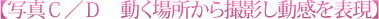 逆にカメラは固定し、動いている場所から撮影したものが写真C・Dになります。