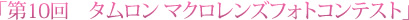 マクロレンズに定評があるタムロンが主催するフォトコンテストです。