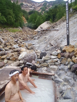 さて、辿り着いた本沢温泉は、けっして温泉旅館ではない。歩かないと着かない山小屋である。しかし、ここの湯がいい。内湯も加温加水循環なしの源泉100%かけ流し。