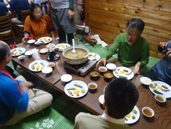 ぼくらは究極のぶくぶく自噴泉を楽しみ、その後は5時から夕食になった。そう、山小屋の夕食は早いのだ。