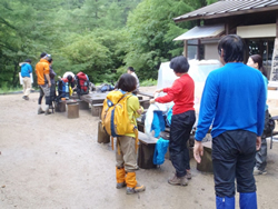 その後、人々はそれぞれがめざす山に向かって山小屋を発つ。 家族連れもいれば、ご夫婦、女性だけのグループも。本沢温泉は午後8時がチェックアウトタイムになっている。