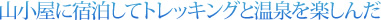 これから秋にかけて、山がもっとも美しくなる。この時期に山小屋へ泊まり、体力に合わせたトレッキングを楽しもう。