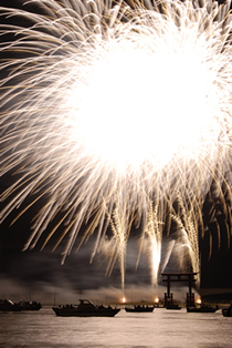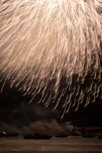 ●三脚にカメラを固定し、花火が打ち上がる場所、形、高さ、色を考えてフレーミングを決める。