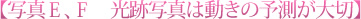 写真Fはシャッターのタイミングが合わずに失敗した例です。