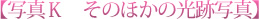 写真Kは鉄橋を行く列車の光跡と星の光跡を同時に写したものです。
