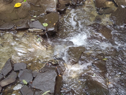 矢沢川は人の手によって石垣などで整備されており、流れも遅く、自然のままの渓流ではありませんが、それでもアメンボがすいすいといく光景に心が和みます。