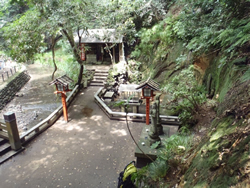 不動の滝は数千年ものあいだ、乾くことなく流れ落ちているのだそうですが、とても細い滝で、ときには修行僧の滝行の場にもなっています。