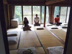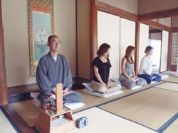 出勤前に訪れたビジネスマン風の男性もいれば、ジョギングの途中で寄った感じのジャージ姿の若い男性がいる。坐禅部屋に入ってくるなり慣れた手つきで座布団を折り、合掌してから座った外国人男性もいた。