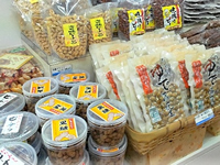 千葉県の落花生生産量は日本全体の75%を超える突出ぶり。そのために、さまざまに製品化されている。写真の商品も「ゆで落花生」「黒糖落花生」「ねりみそピーナッツ」など多数。梨も日本一。