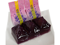 ぶどうや桃が生産量日本一、フルーツ王国の山梨県にある双葉SAのおすすめがこれ。ぶどう味のこんにゃくゼリーの中に、巨峰が入っている新製品。冷やして食べればより一層幸せに。