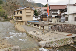 3月上旬から12月上旬の日曜祝日の朝になると、上流の鏡野町の奥津橋のたもとでは、昔ながらの「足踏み洗濯」の光景を見ることができる。