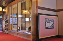 宿のエントランスには、彼の「板画」による作品が展示してある。