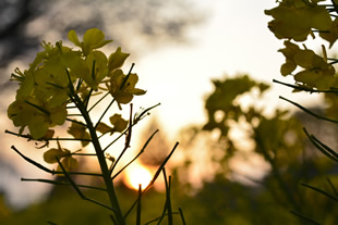 つまり、カメラを構える場所を変え、360度違う向きから撮影しています。ナノハナの向きが逆さまになり、背景はもちろん、見た目の雰囲気もまったく違った写真になりました。