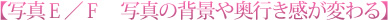 写真Eは正面から、写真Fは少し回り込んで花の横方向から撮影しています。